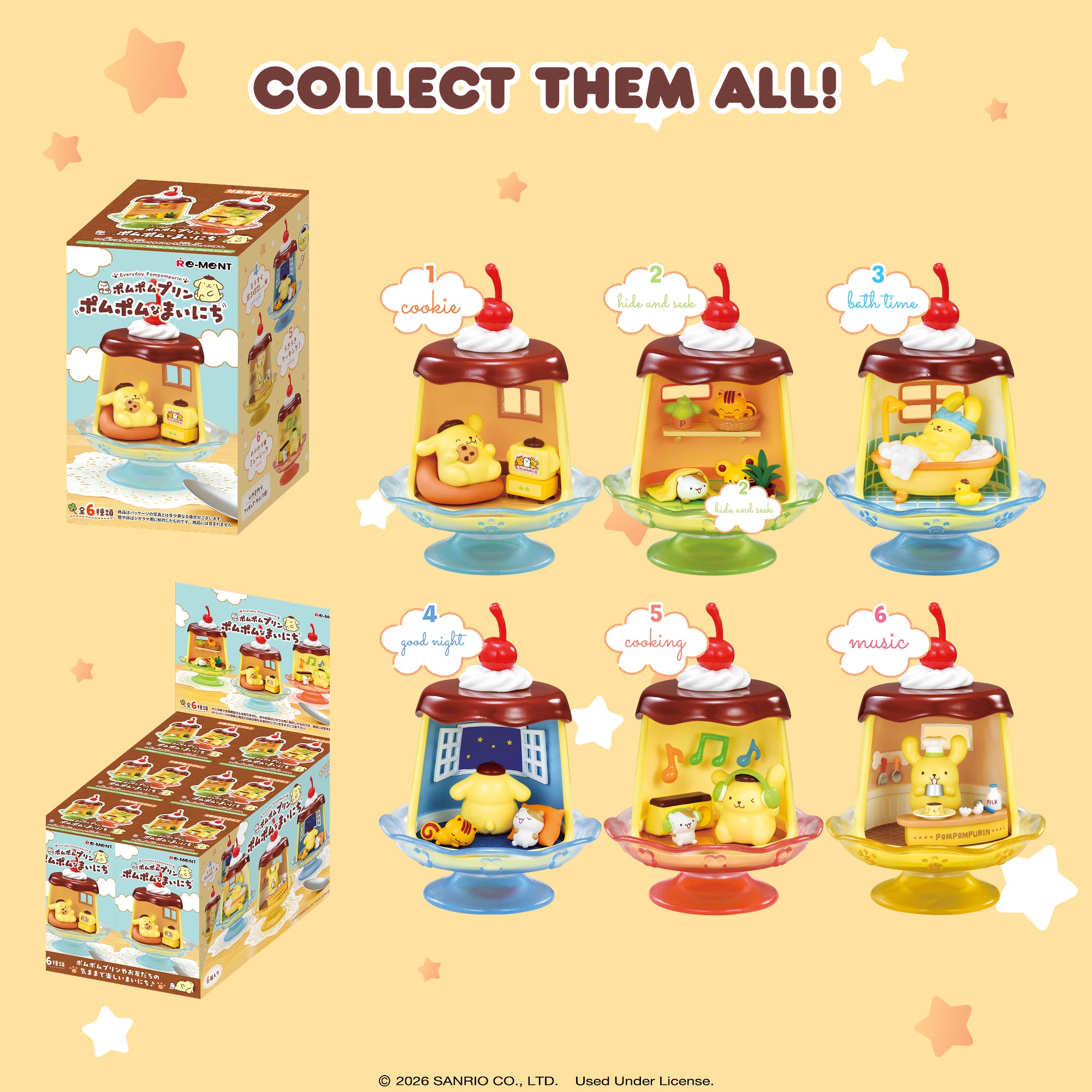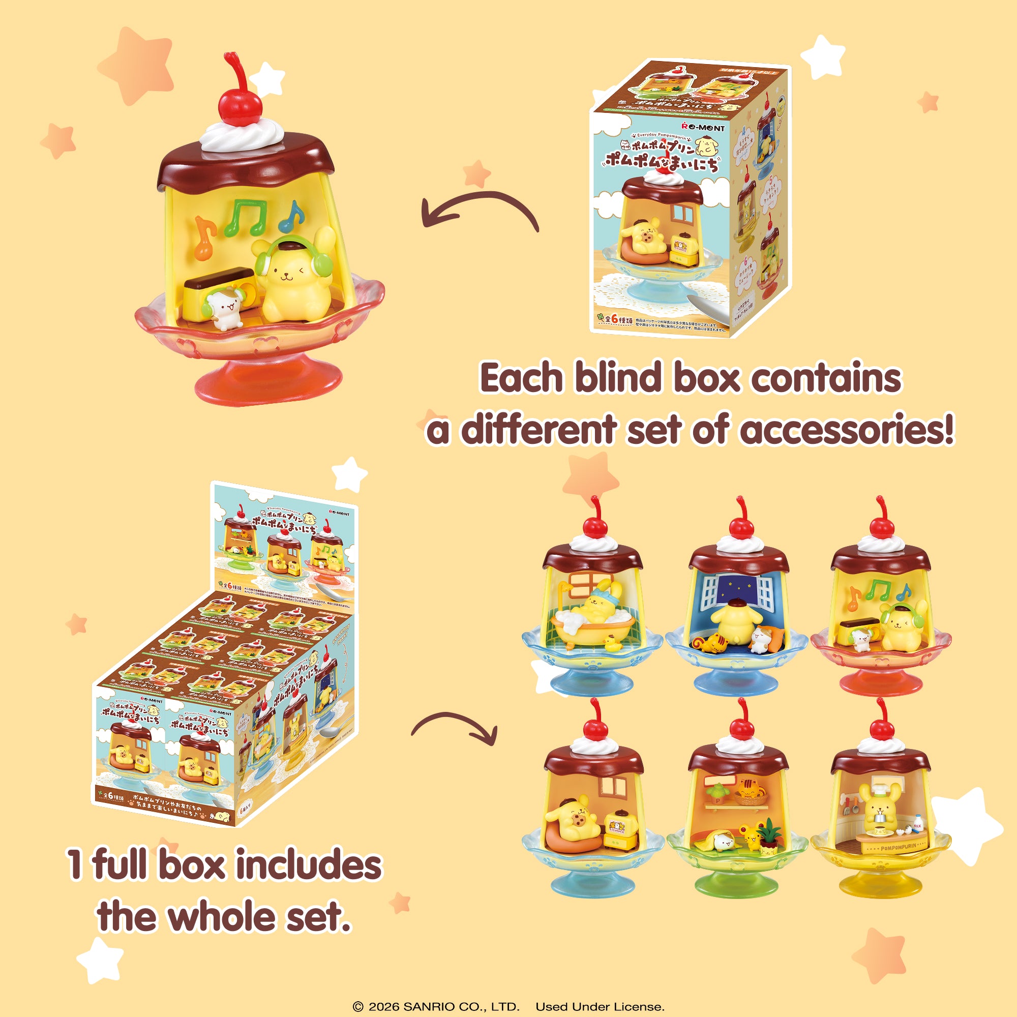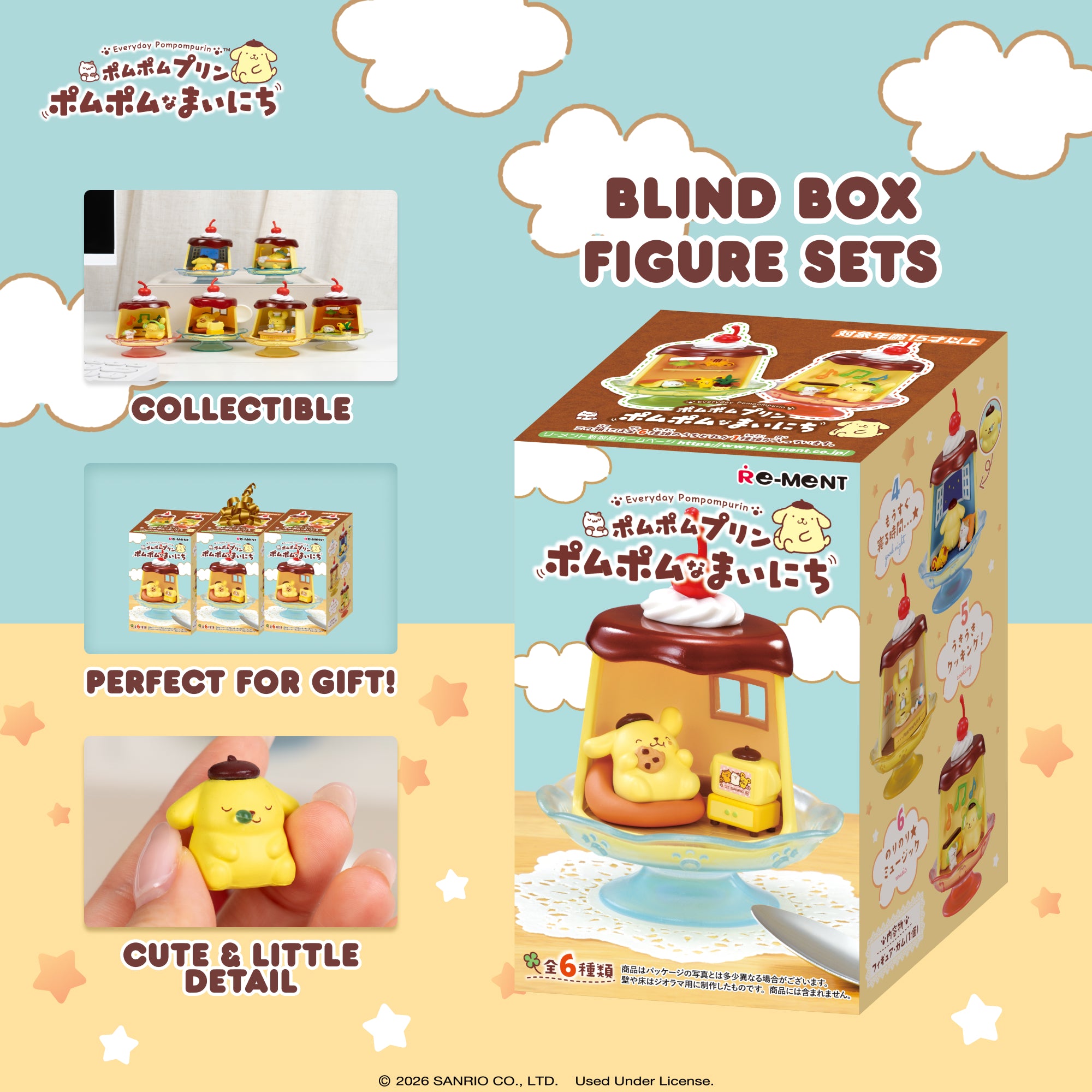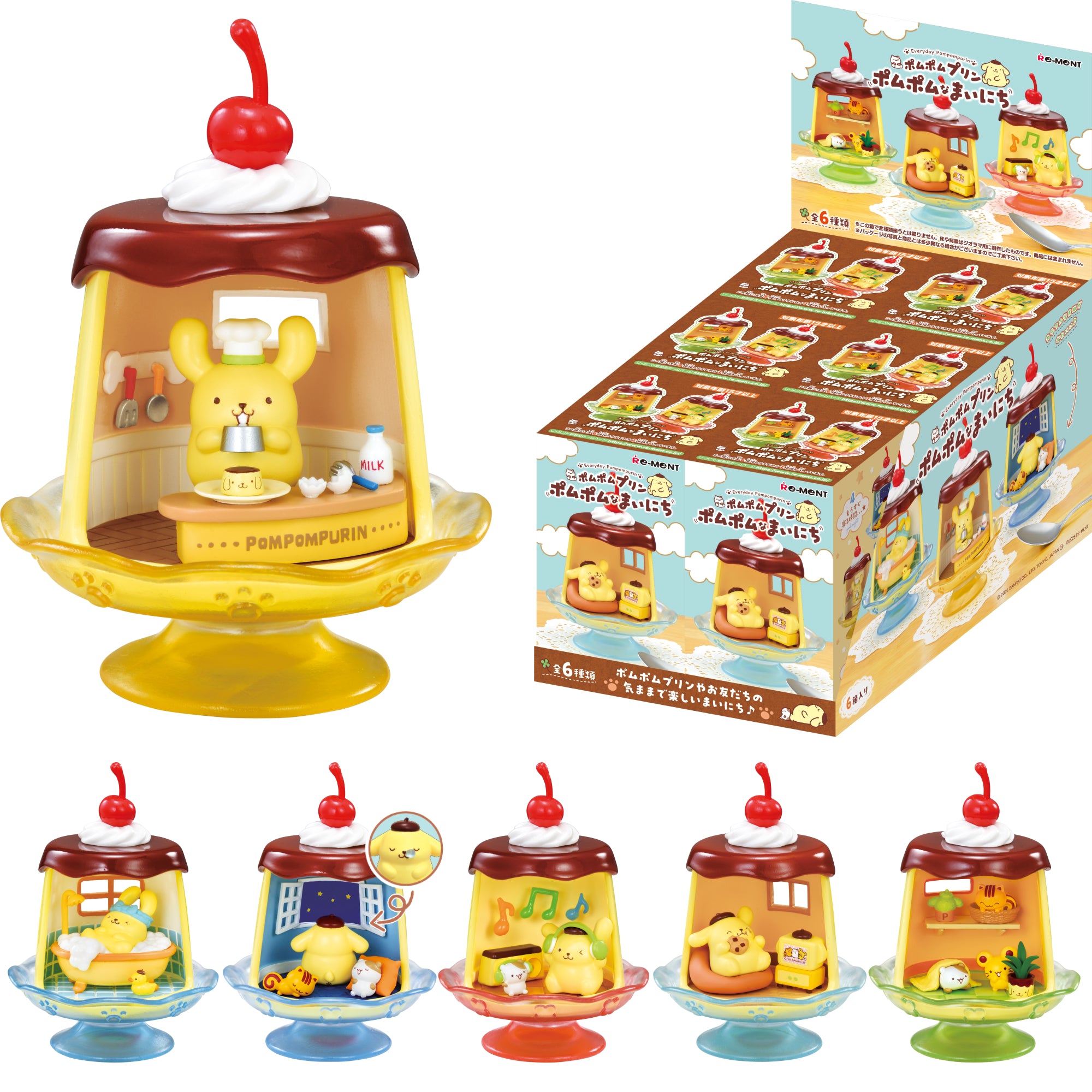[OFFICIALLY LICENSED SANRIO MINI FIGURE SETS] ♡ Premium collectible miniature figure sets featuring Pompompurin, Muffin, Bagel, and Scone in their everyday routine! Each surprise blind box contains one of 6 mini figure sets that you can combine with other RE-MENT figures to display in tons of creative ways!