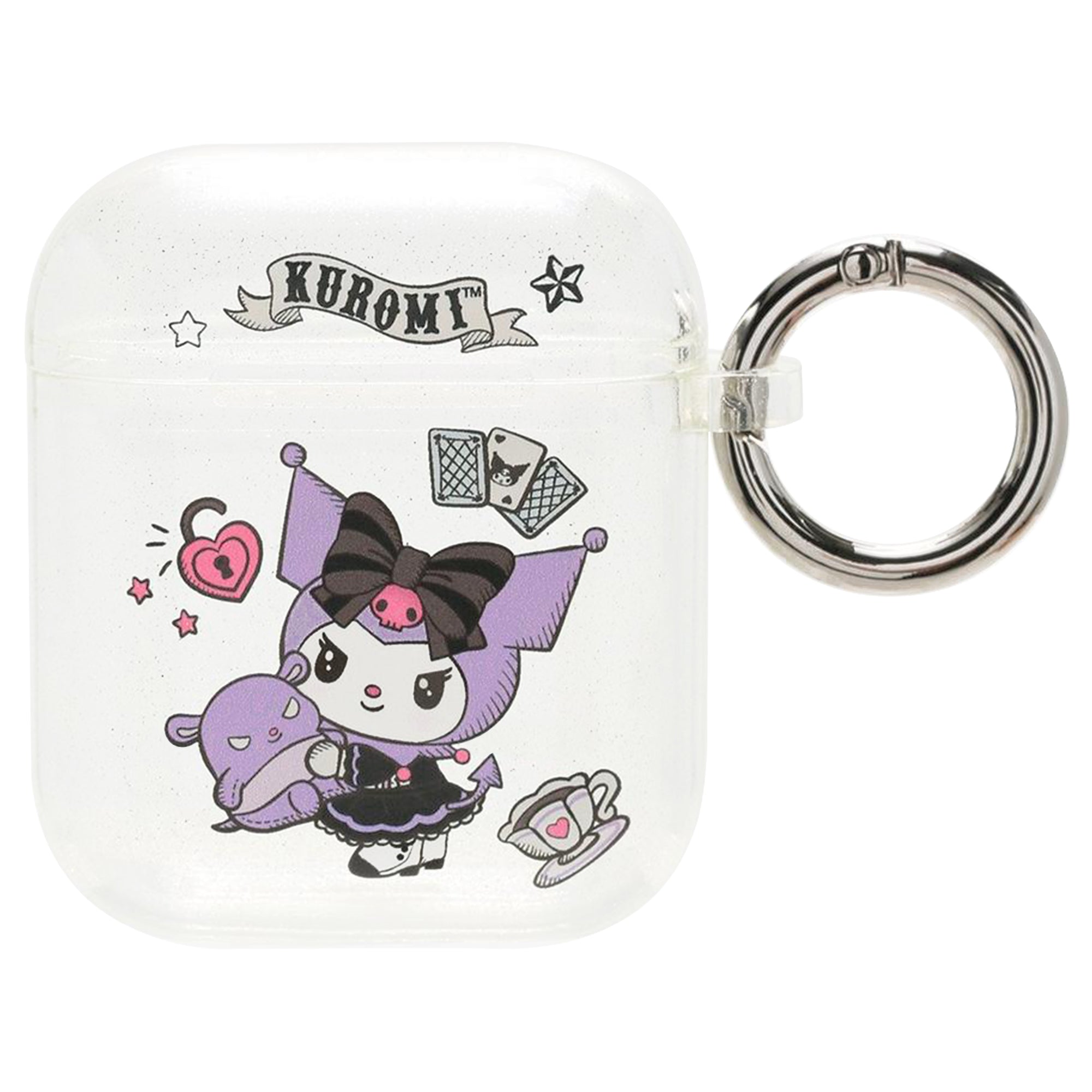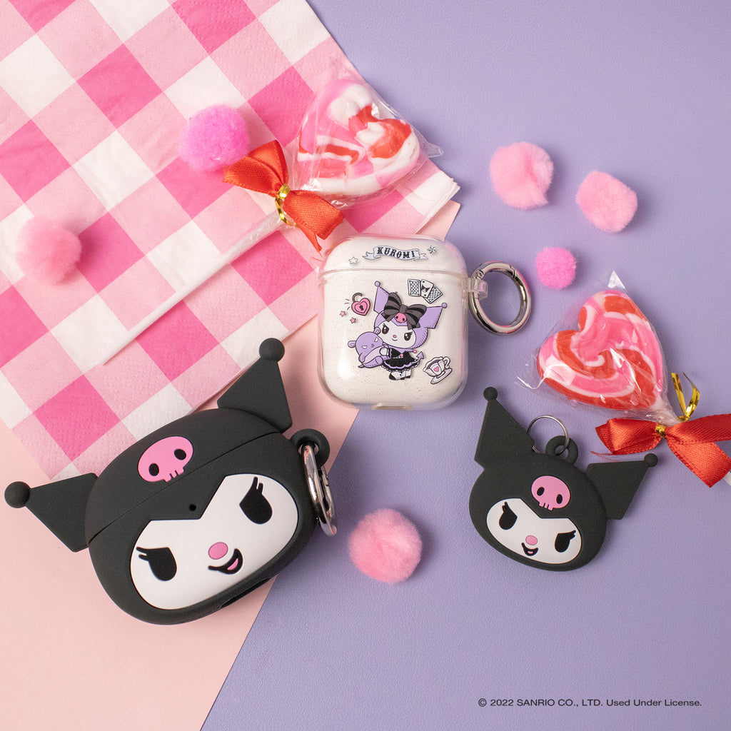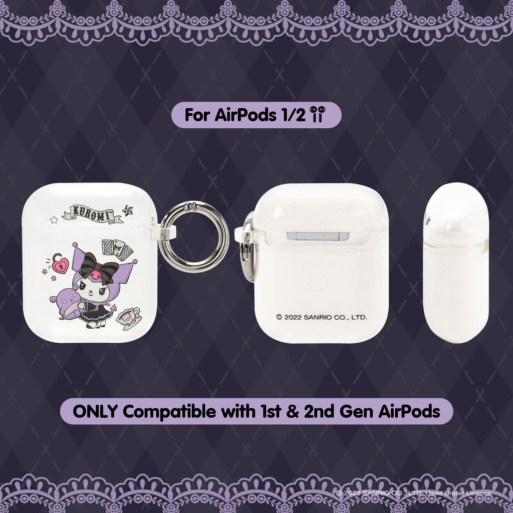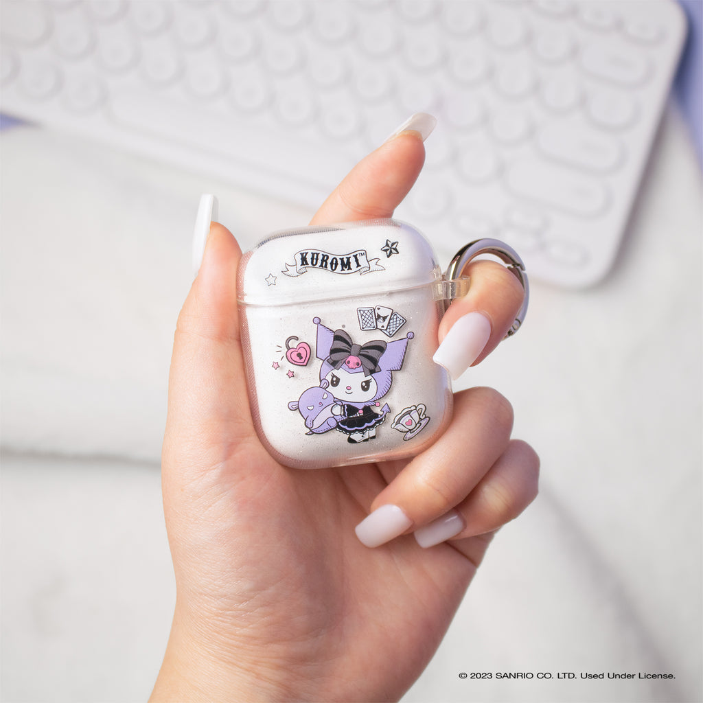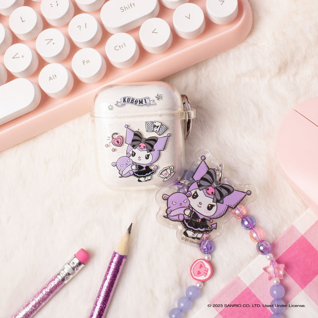 KUROMI CLEAR GLITTER CASE ♡ This clear glitter AirPods case features Kuromi dressed in her fortune teller outfit with her friend Baku!