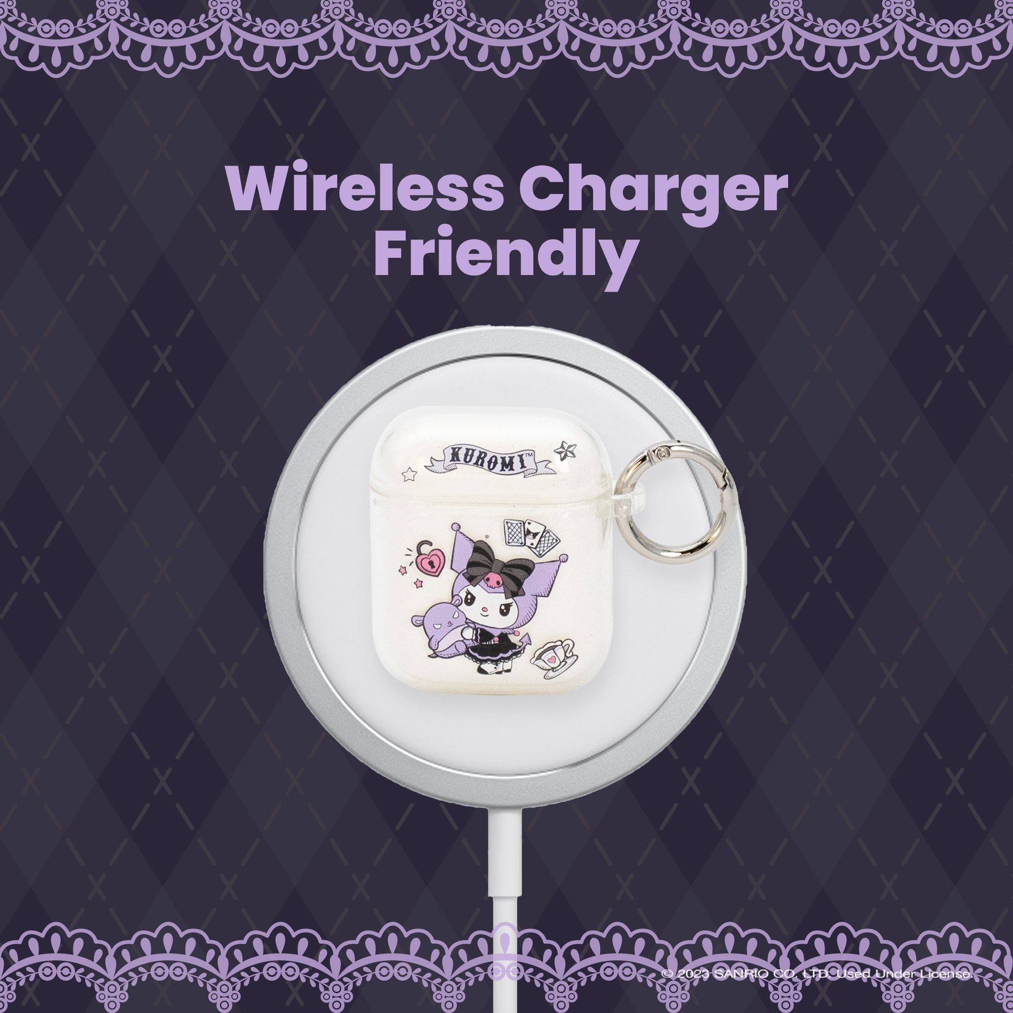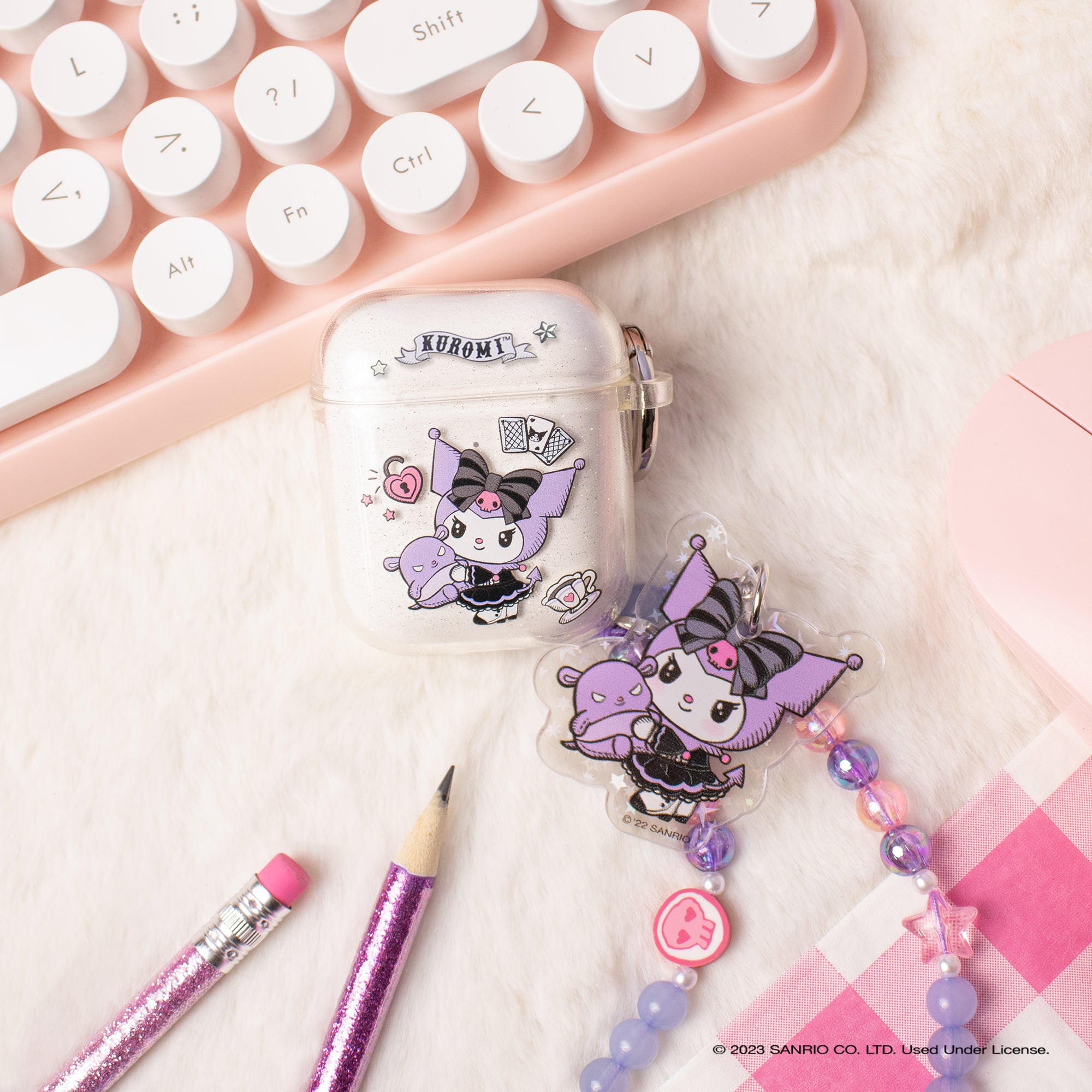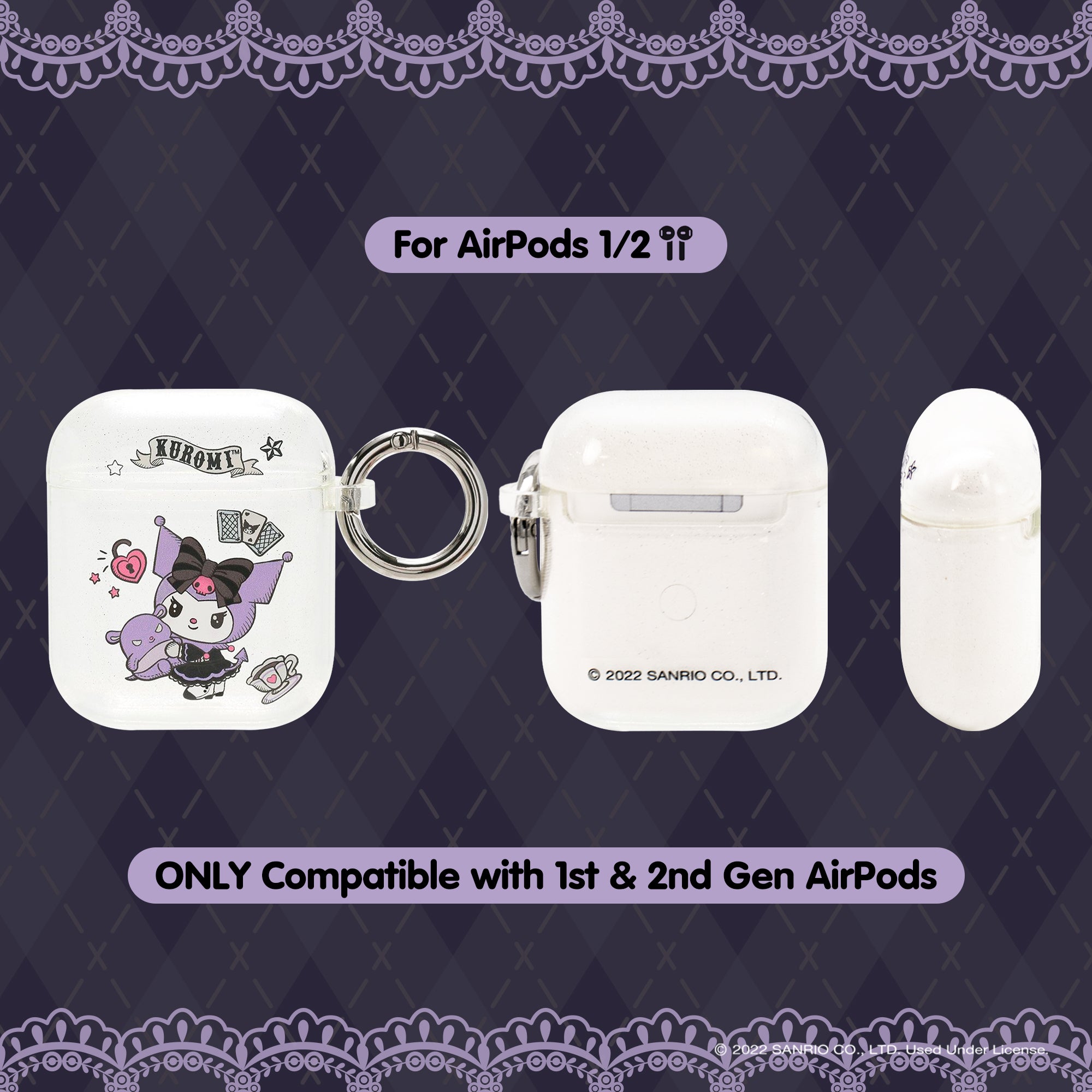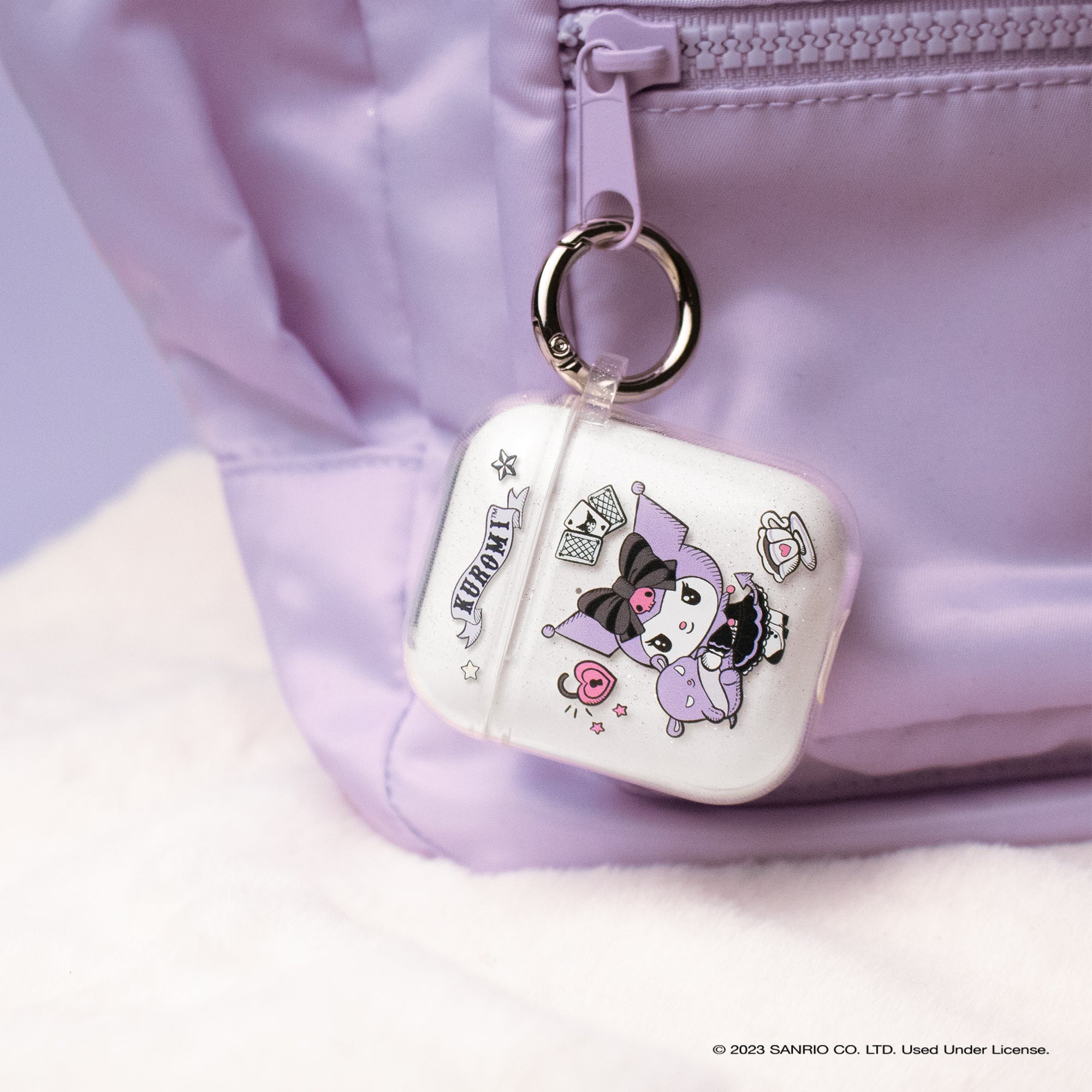 KUROMI CLEAR GLITTER CASE ♡ This clear glitter AirPods case features Kuromi dressed in her fortune teller outfit with her friend Baku!