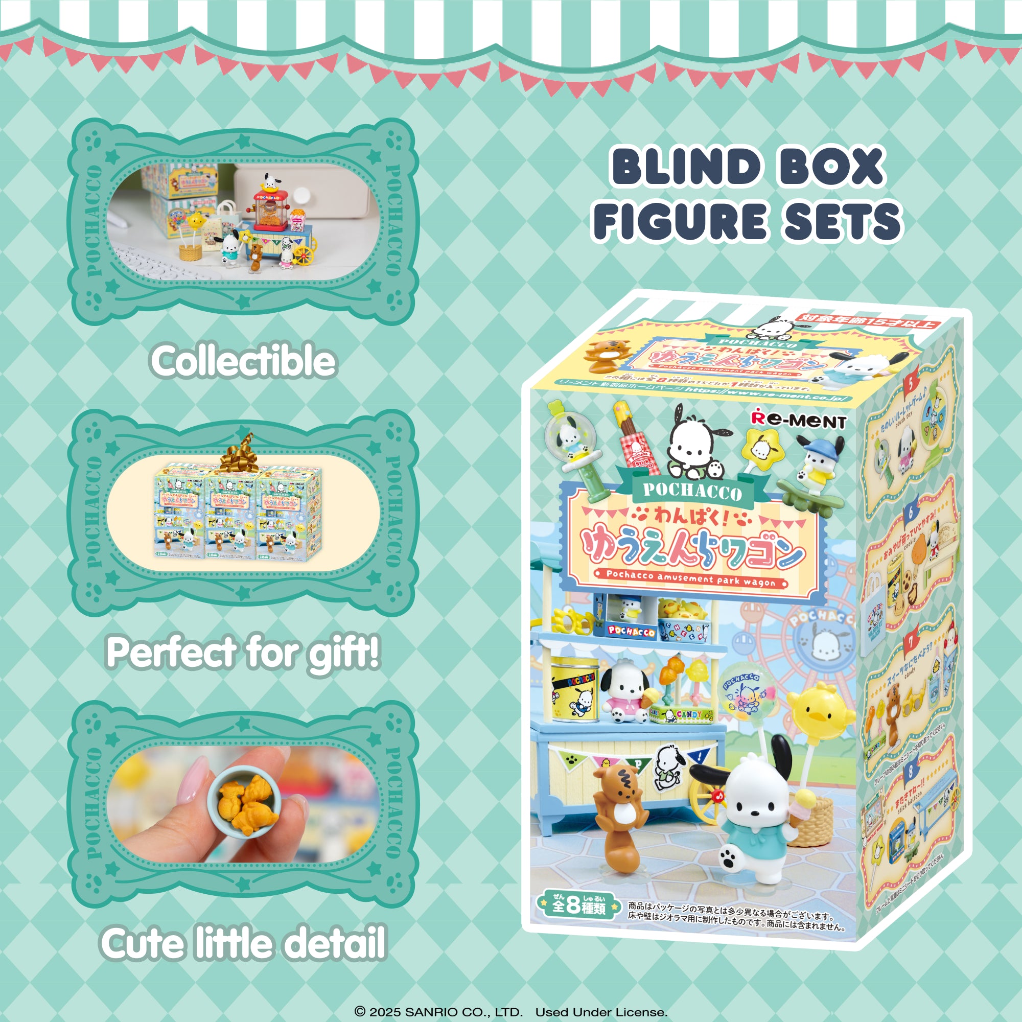 [OFFICIALLY LICENSED SANRIO MINI FIGURE SETS] ♡ Premium collectible miniature figure sets featuring Pochacco and Mon-Mon at Pochacco’s Amusement Park Wagon! Each surprise blind box contains one of 8 mini figure sets that you can combine with other RE-MENT figures to display in tons of creative ways!