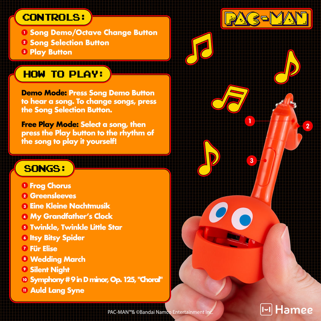 • SPECIAL EDITION ♡ PAC-MAN meets Otamatone Melody! This adorable special edition mini-sized Otamatone comes programmed with several well-known songs kids can play along with, introducing them to new music and helping them learn rhythm! Available characters include PAC-MAN, plus Blinky, Inky, Pinky and Clyde the ghosts!