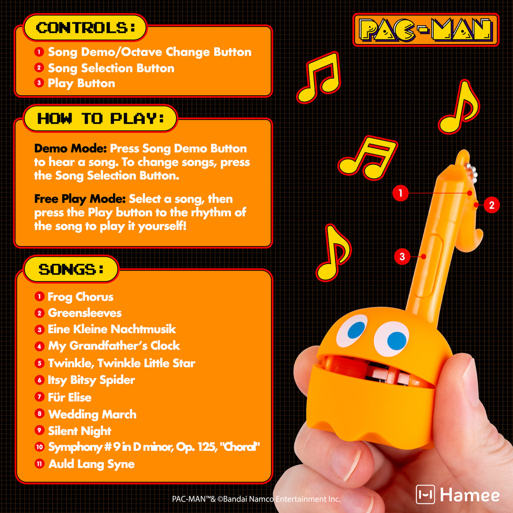 • SPECIAL EDITION ♡ PAC-MAN meets Otamatone Melody! This adorable special edition mini-sized Otamatone comes programmed with several well-known songs kids can play along with, introducing them to new music and helping them learn rhythm! Available characters include PAC-MAN, plus Blinky, Inky, Pinky and Clyde the ghosts!